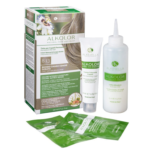 Tinta per Capelli Permanente 8.13 Biondo Chiaro cenere Dorato - Alkemilla