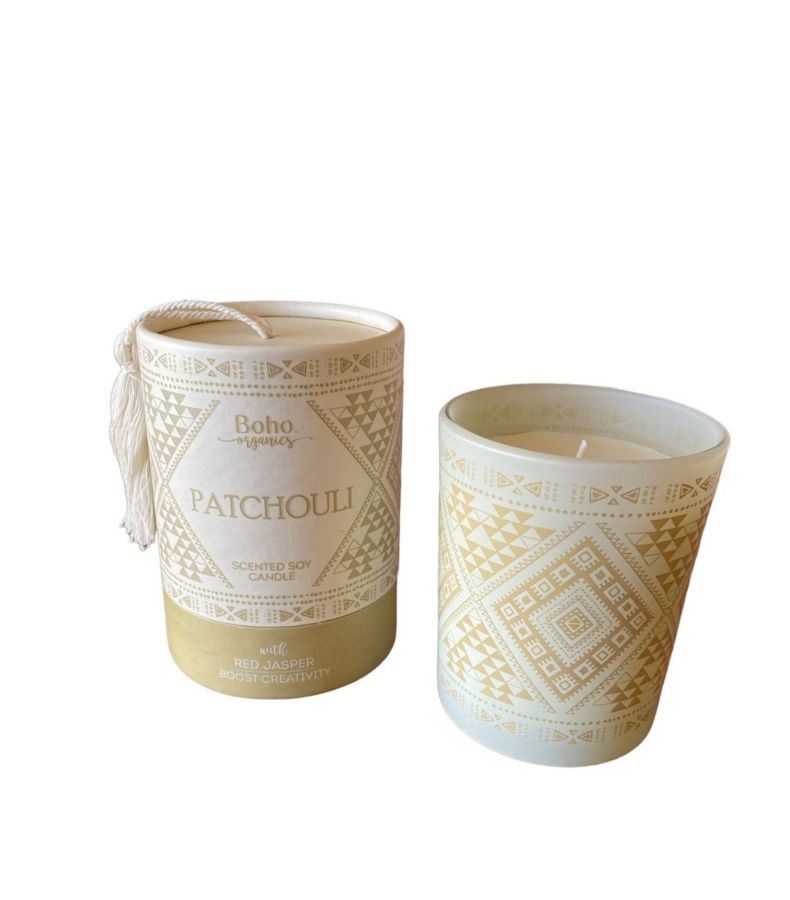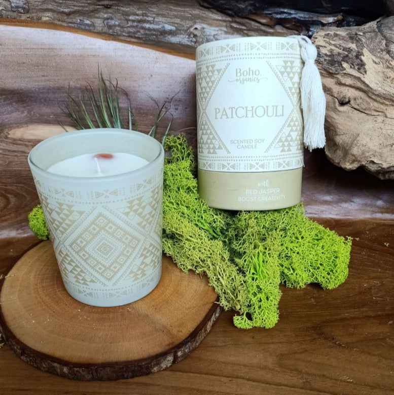 Candela in cera di soia BOHO ORGANIC Patchouli con Diaspro Rosso - 200g