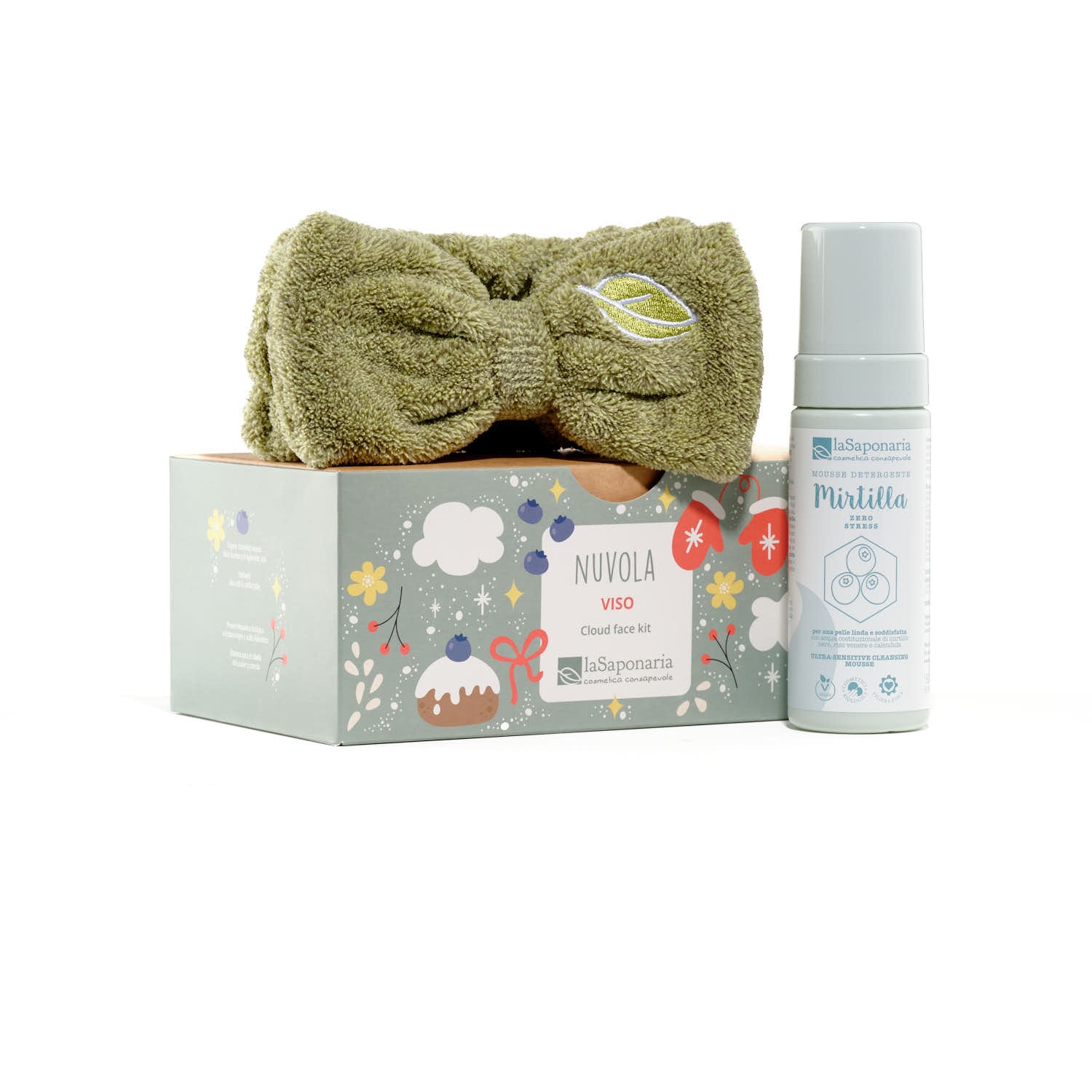 Il cofanetto contiene 1 Fascia Capelli per Skincare e 1 Mousse Detergente Mirtilla.