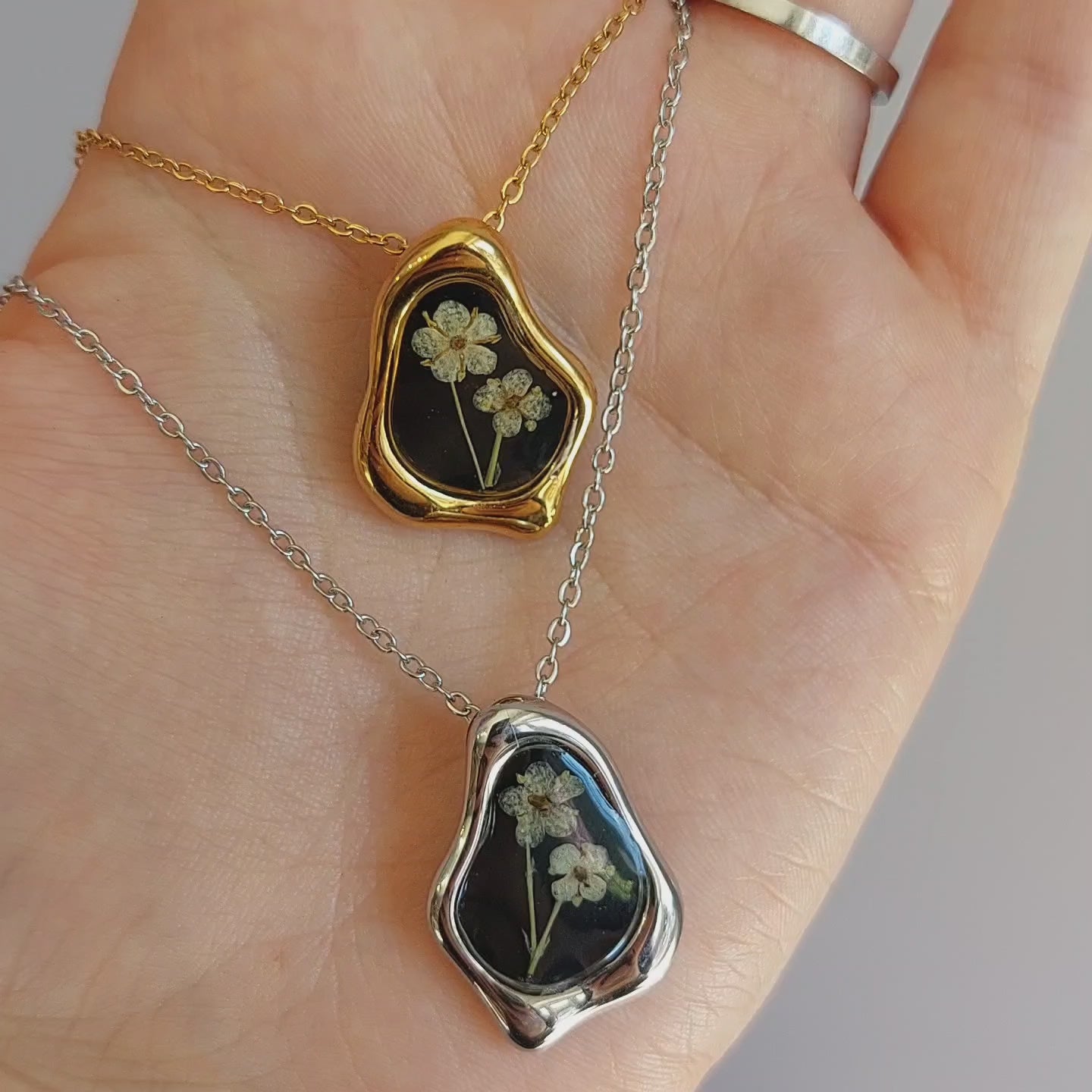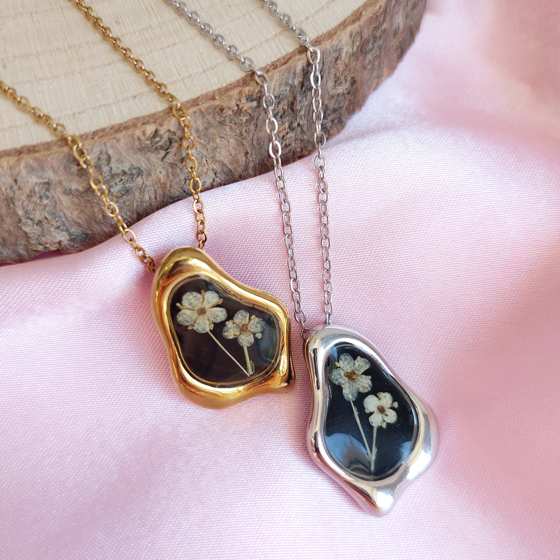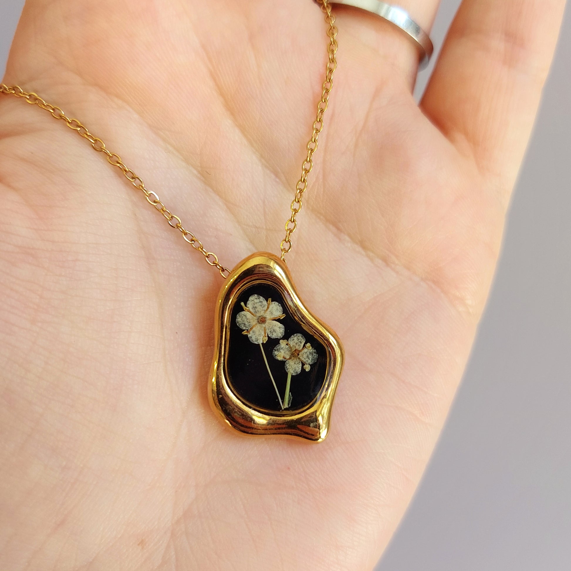 🌸 NB: ogni gioiello è un pezzo unico, realizzato a mano con veri fiori essiccati. Proprio per la naturale diversità dei fiori e la lavorazione artigianale, il colore e la disposizione dei fiori potrebbero variare leggermente rispetto alle foto, rendendo ogni creazione irripetibile e speciale.