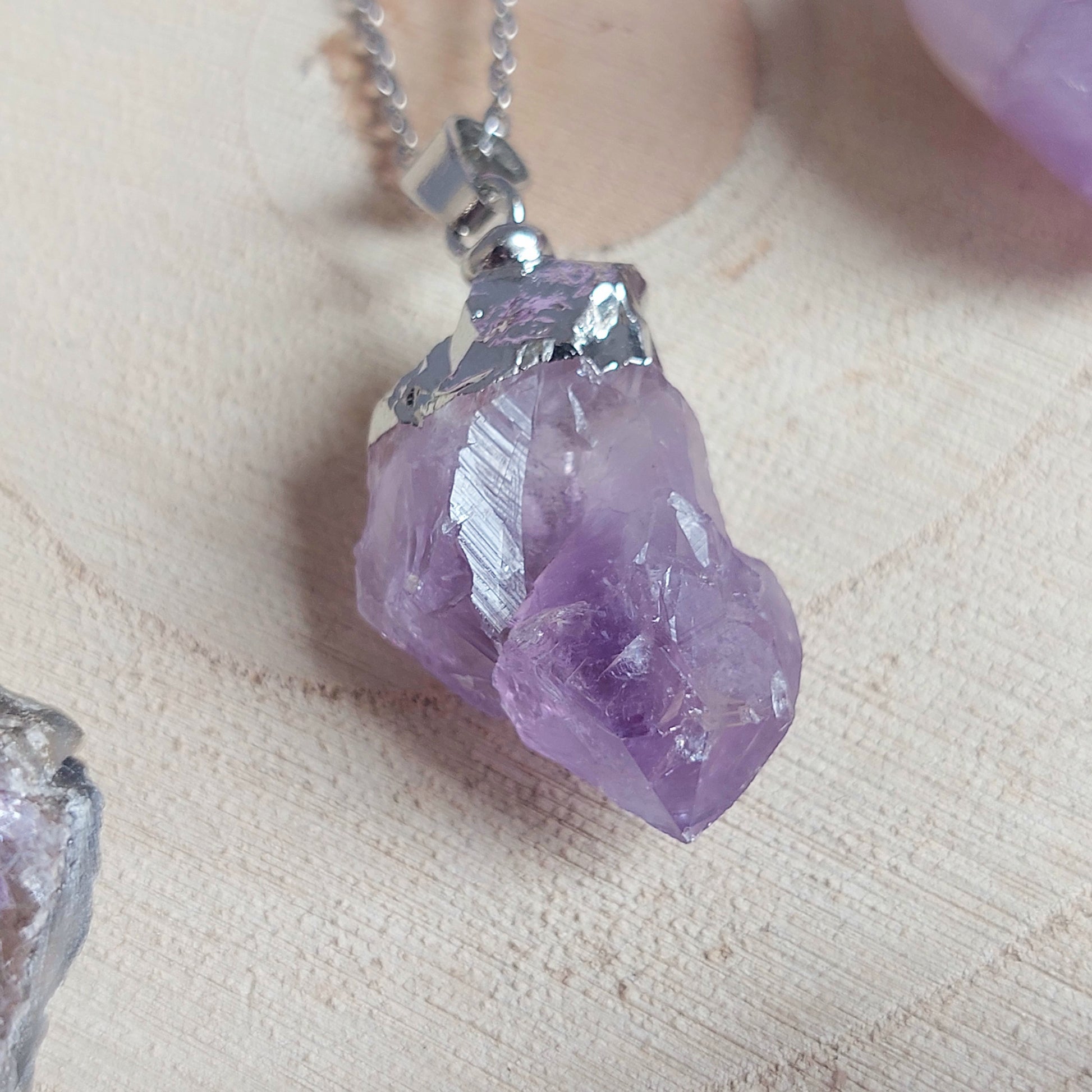 Un gioiello elegante e senza tempo: catenina in acciaio inossidabile con ciondolo a punta di ametista naturale, perfetto da indossare ogni giorno.
