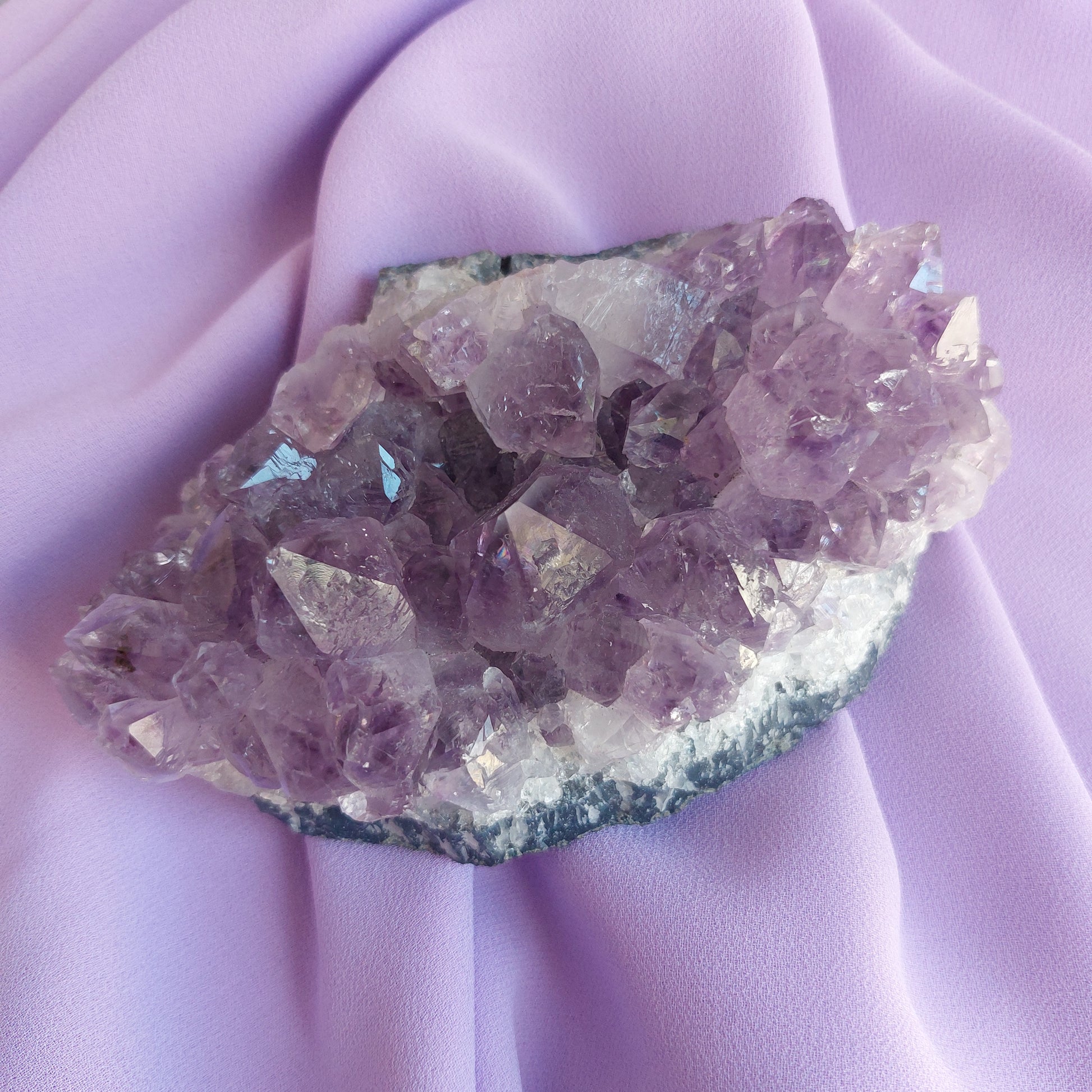 La drusa di ametista è autonoma nel mantenere le proprie vibrazioni elevate, ma puoi rigenerarla ogni tanto con uno di questi metodi: