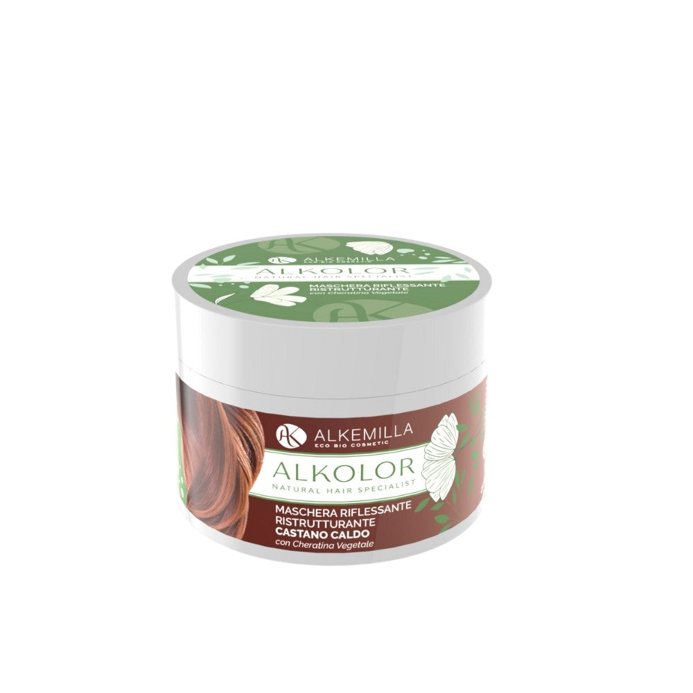 La maschera riflessante con cheratina vegetale è utilizzata per mantenere e intensificare il colore dei capelli, donando riflessi caldi e luminosi. La cheratina vegetale, invece, aiuta a rinforzare e nutrire i capelli, migliorandone la struttura e la lucentezza. Questa maschera è ideale per chi desidera ravvivare il colore tra una tintura e l'altra, mantenendo allo stesso tempo i capelli sani e ben idratati.