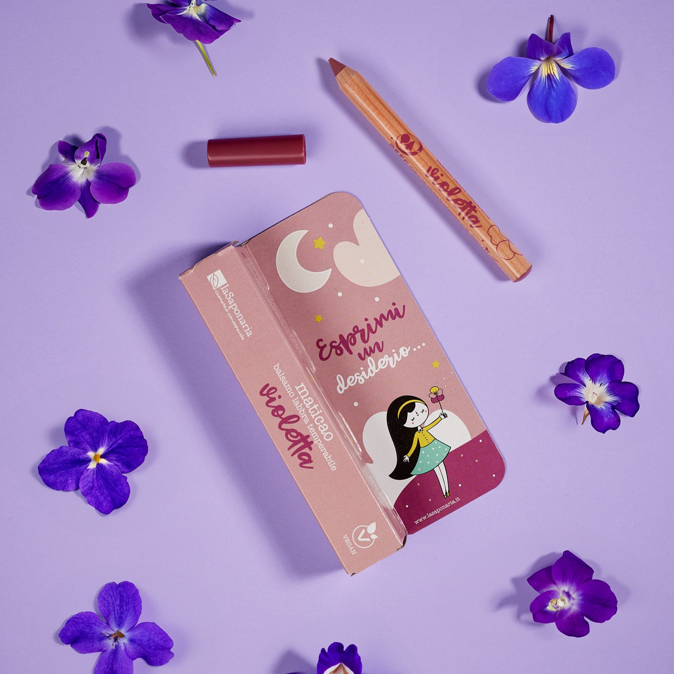 Balsamo labbra temperabile colorato: lascia una traccia violetta.