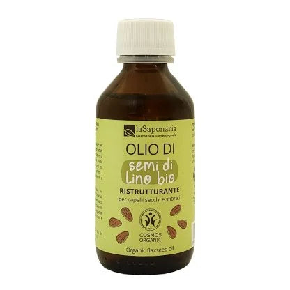L'olio di semi di lino biologico dona corpo e nutrimento ai capelli secchi, utile per contrastare la formazione delle doppie punte.