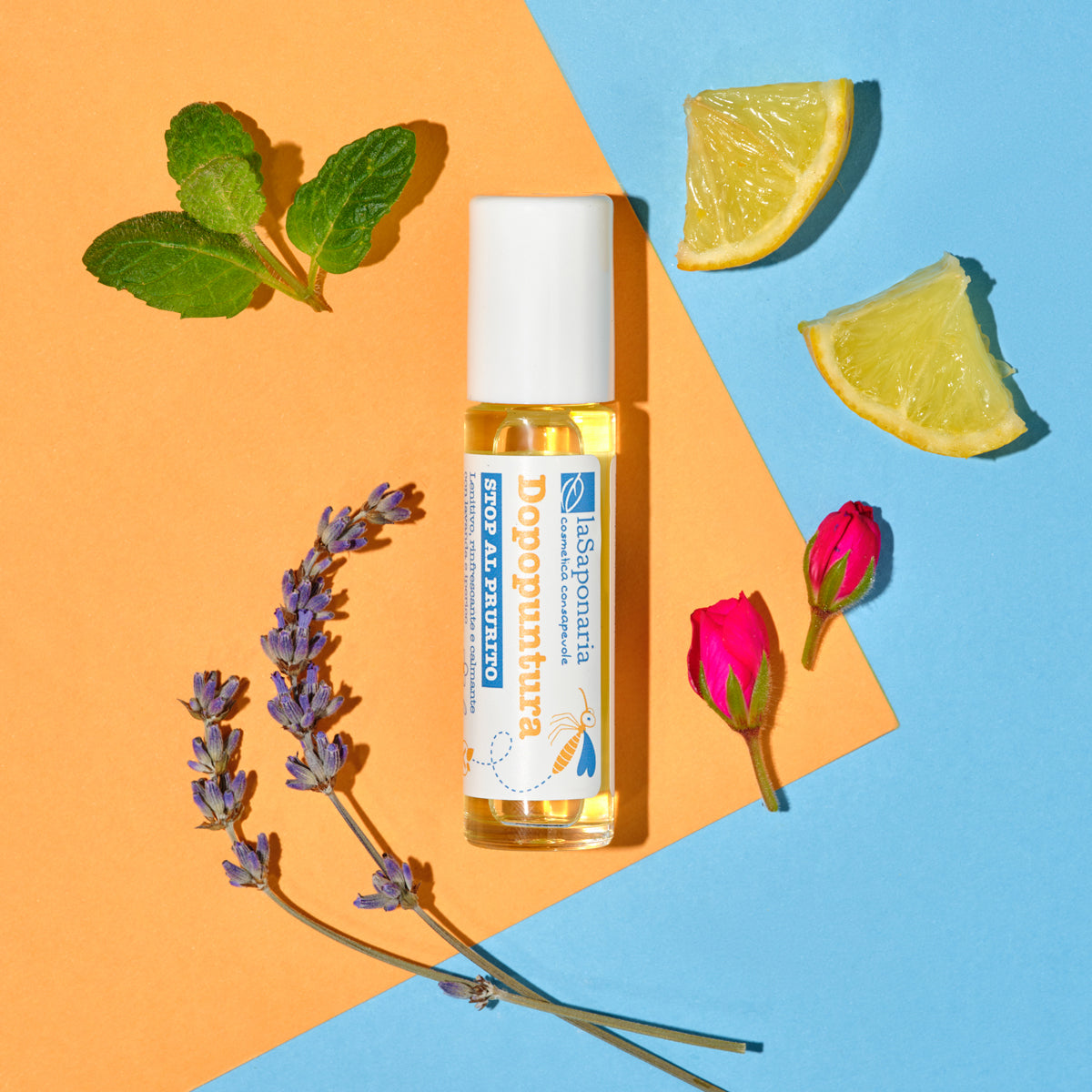 Questo pratico roll-on dopopuntura unisce le proprietà lenitive e rinfrescanti degli oli essenziali di lavanda, geranio e iperico, per calmare rapidamente prurito, pizzicore e bruciore.