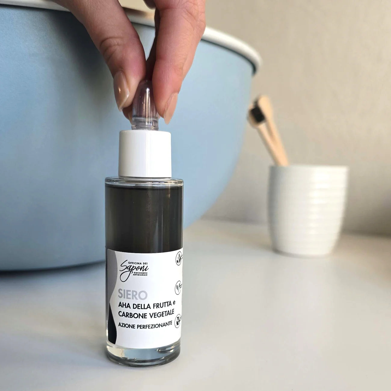 Siero AHA della Frutta e Carbone Vegetale Perfezionante - Officina dei Saponi